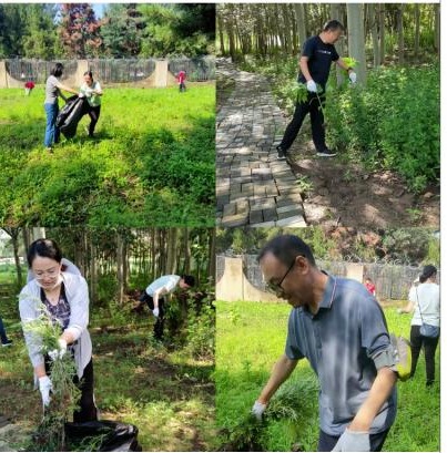 7月8日上午8时,太阳成集团tyc33455党委联合党委组织部开展“庆祝中国共产党成立 101 周年” 专题党日活动,党员群众积极参与,共同清理杂草,共创美丽校园。