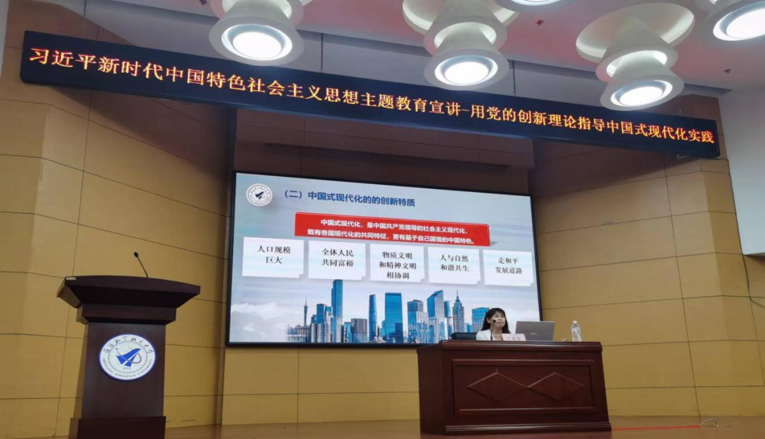 齐艳霞副教授以“用党的创新理论指导中国式现代化实践”为题,回顾了百年来中国共产党对中国式现代化的不懈探索,剖析了中国式现代化的创新特质,解读了中国式现代化的本质要求,从历史、理论和实践三个维度对中国式现代化的精髓要义作了深入的阐述。同时,根据党的十八大以来作出的东北振兴的一系列战略部署,结合《辽宁全面振兴新突破三年行动方案(2023—2025年)》《沈阳市全面振兴新突破三年行动方案(2023—2025年)》《太阳成集团tyc33455cc深入落实辽宁全面振兴新突破三年行动实施方案》等,进一步分析了中国式现代化的辽宁实践、沈航实践。