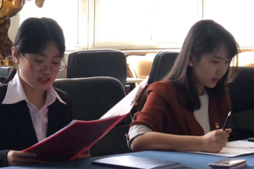 教工党支部书记祁宁、朱恒峰,学生党支部书记刘美妍、王一涵分别结合工作交流发言。