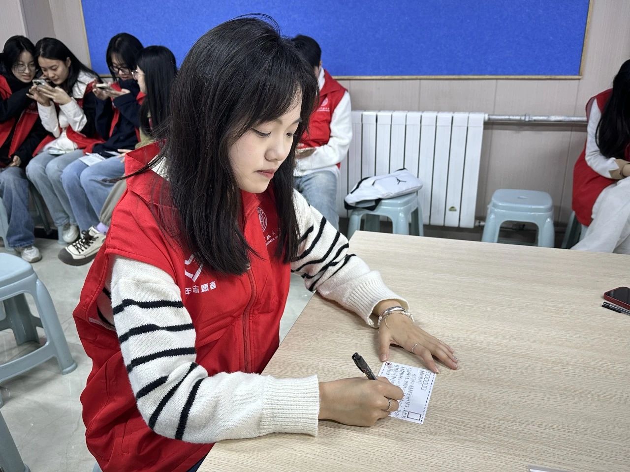 活动伊始,主持人详细介绍了活动背景、意义以及明信片书写规范,极大地激发了同学们的参与热情。在书写环节,同学们热情高涨,纷纷拿起彩笔,在明信片上写下对乡村儿童的深情寄语。一句句真挚的话语,承载着对孩子们成长的鼓励、对他们未来的美好期许,字里行间满是关爱的温度。这些质朴又充满力量的文字,将跨越万水千山,为乡村儿童带去精神上的慰藉与支持。