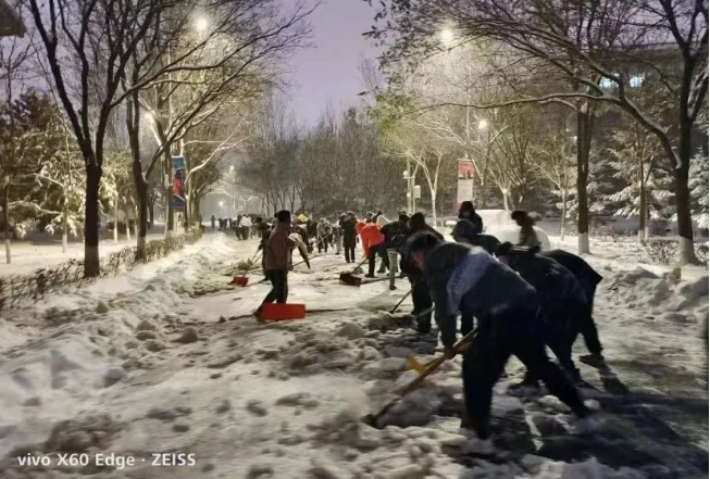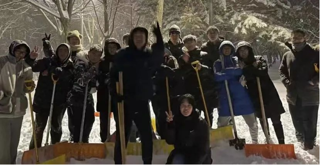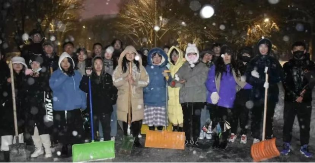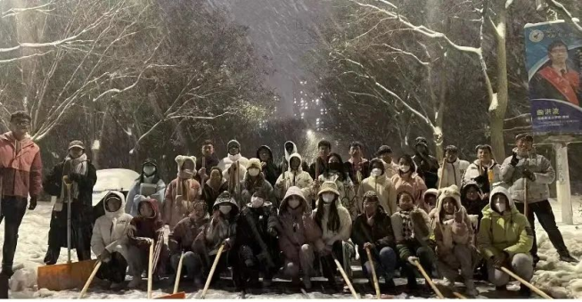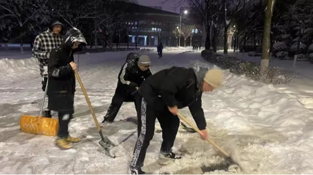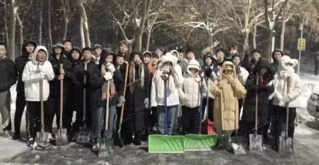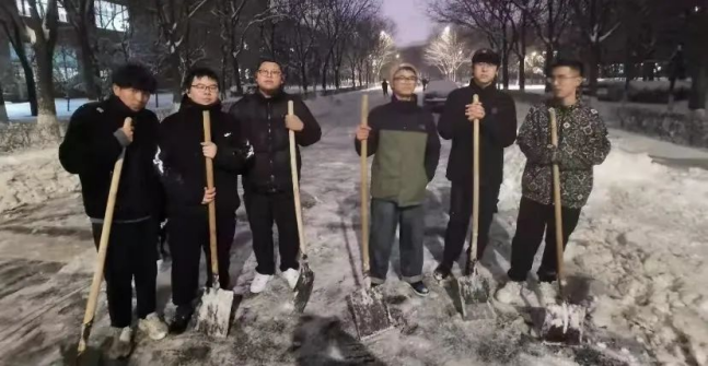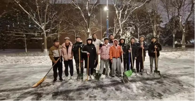 为保证师生出行安全和校园道路畅通,太阳成集团tyc33455院长荆浩带领我院老师、同学们开展扫雪活动。由于降雪量较大,经过车辆碾压,校园里的积雪十分坚实,给清扫的工作带来了较大困难。虽然天气寒冷,但大家干劲十足,不畏艰难。恶劣的天气也阻挡不了大家扫雪的热情。