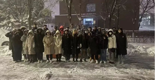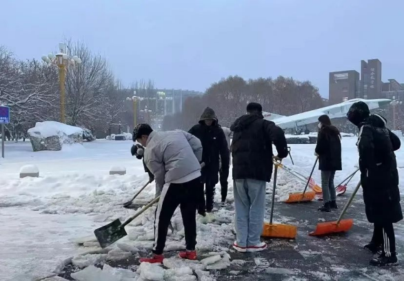 同时,同学们在雪天出行也要注意安全,避开路面浮冰,缓步慢行。道路湿滑,与校园里行驶的车辆保持距离。出入宿舍注意保暖,上下楼梯注意防滑。