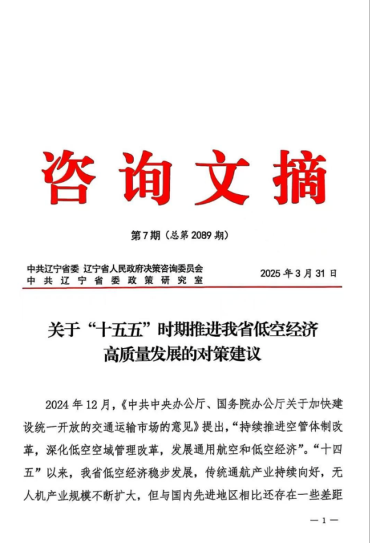 该成果是我校在低空经济研究领域资政建议的重要成果,为辽宁省“十五五”低空经济战略规划布局提供了有力支撑,彰显了沈航的智库担当!