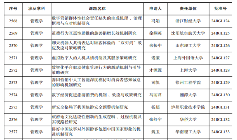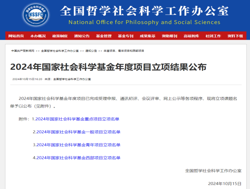 近日,2024年国家社会科学基金年度项目最终立项名单公布。