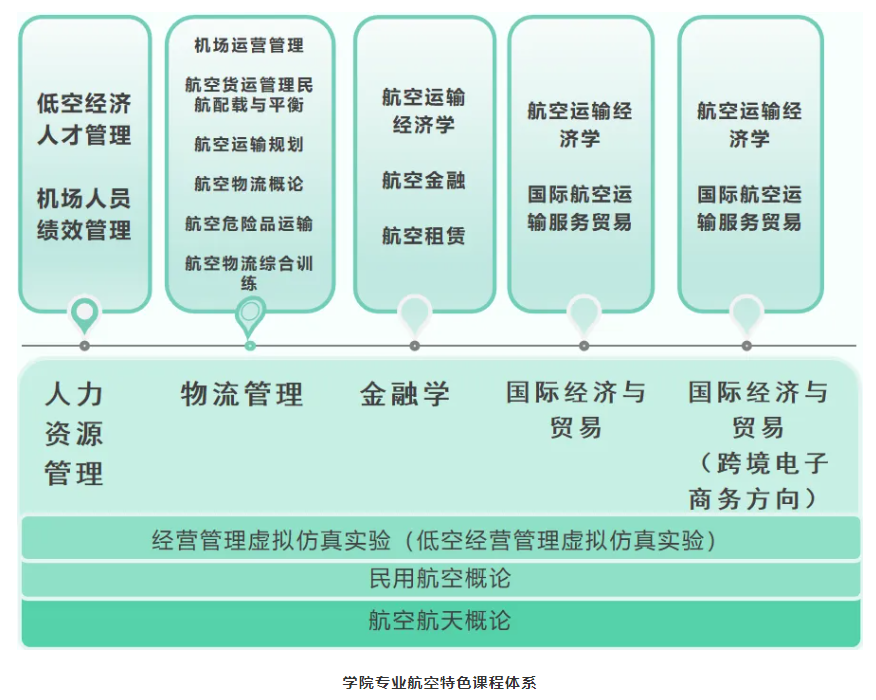 2024年,学院对专业进行数据化升级,构建了数据+航空经管培养体系,强调“知识复合、学科融合,实践能力培养”。我们构建了数据类课程体系,培养学生的数据化思维、数据化技能及行业数据化应用能力;构建了航空经管课程体系,近20门航空类经济与管理类课程贯穿各专业的培养过程,培养面向数据时代的航空类特色的经管人才。