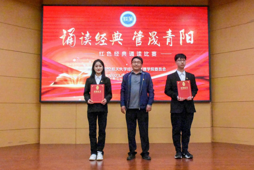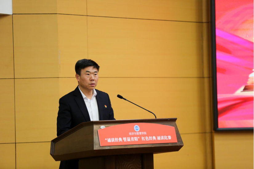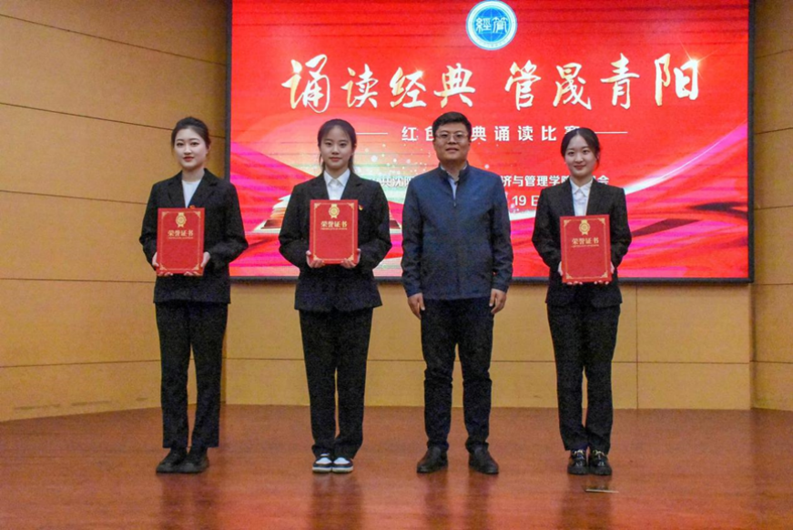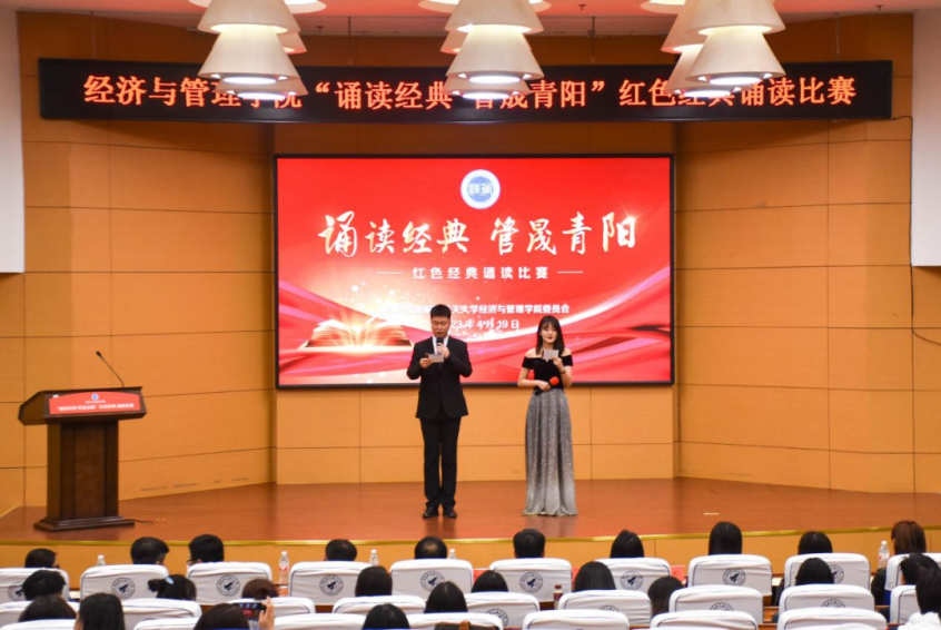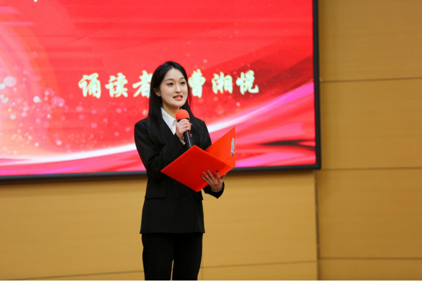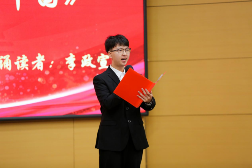 为深入学习贯彻党的二十大精神,以良好的精神风貌深入开展学习贯彻习近平新时代中国特色社会主义思想主题教育,4月19日下午,太阳成集团tyc33455“诵读经典 管晟青阳”红色经典诵读大赛决赛在新时代文明实践中心隆重举行。党委常委、党委组织部部长徐宝贵,校工会副主席徐凯,党委学生工作部部长、学生处处长王迪,校团委书记李江,学院领导班子成员,师生党员代表200余人出席本次活动。