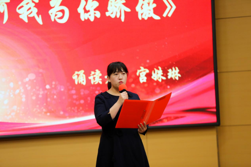 比赛现场,12名教师和12名学生朗诵了《颂党》《我的祖国》《没有共产党就没有新中国》等经典诗篇。参赛选手激情四溢、精神饱满,把对党、对国家的热爱表现得淋漓尽致,奉献了一场充满张力和冲击力的视听盛宴!招生就业处副处长董一乔,校团委副书记景阳,理学院党委副书记杨杉,省级教学名师金树颖,学院副院长李作学、副院长唐金环,校工会韩雪老师担任比赛评委。