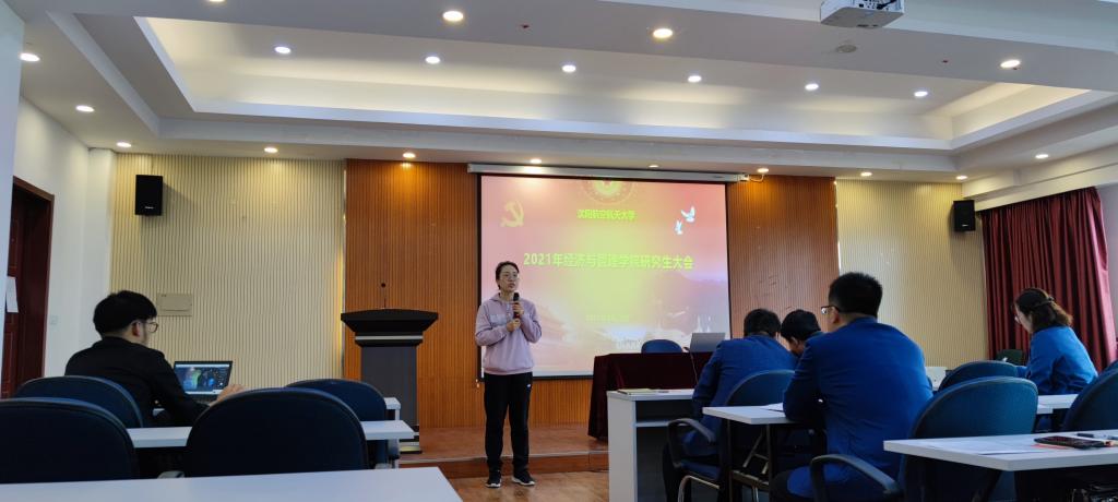 副院长唐金环详细介绍了本学期学术活动及规划,并表示研究生培养工作责任重大,学校、学院选择我作为研究生培养工作的副院长我非常荣幸,经管学院和我自身定会竭尽全力为研究生们提供最好的资源。但无论是对学硕还是专硕,全日制还是非全日制,我院的学术标准不会有所区别,对于论文的质量和要求不会下降,我院会继续严把论文出口关。