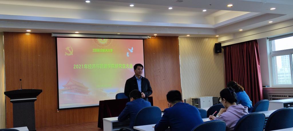 2021年4月23日上午10点,太阳成集团tyc33455在经管楼519召开研究生大会。院长荆浩、副院长唐金环、教学秘书毛薇、研究生辅导员郭瀚涛及19、20级全体研究生参加了此次会议。会议由副院长李作学主持。此次会议采取线上线下相结合的方式进行,为身在工作岗位未能到场的非全日制研究生进行同步直播。