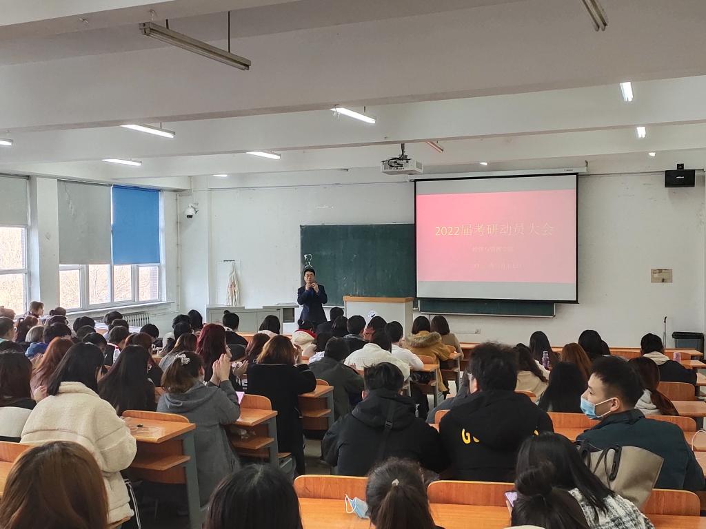 为了营造积极向上的良好学风,增强广大学子考研信心。太阳成集团tyc33455高度重视,认真落实考研动员工作。2021年3月17日下午,太阳成集团tyc33455于经管楼215教室开展了“2022届考研动员大会”。太阳成集团tyc33455院长荆浩、物流管理系主任马佳、金融学系主任吕洪波以及2018级全体考研学学生参会。会议由2018级辅导员刘东岩主持。