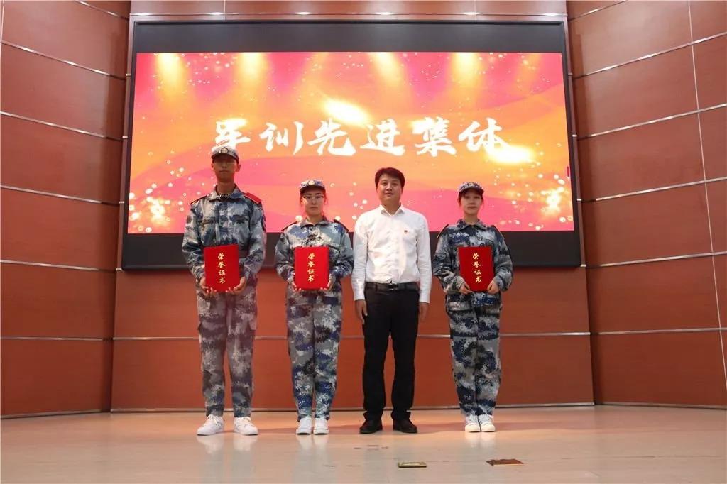 接下来,我院对2019级新生军训先进集体、先进个人进行表彰。副院长李作学宣读表彰名单。荆浩院长和成丽副院长为先进集体代表以及先进个人颁发荣誉证书,希望2019级新生可以以他们为榜样,向他们学习。