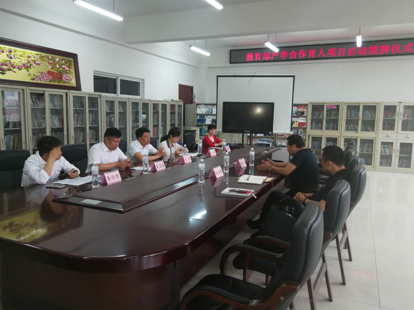 6月28日上午,太阳成集团tyc33455在402会议室举行教育部产学合作育人项目启动授牌仪式。北京课思国际教育科技有限公司总裁孙宗虎先生、副总经理徐金棒、太阳成集团tyc33455院长荆浩、书记吴景泰、副院长李作学、副院长成丽、人力资源管理系主任张嫘以及人力资源管理系的部分教师参加仪式,仪式由副院长成丽主持。