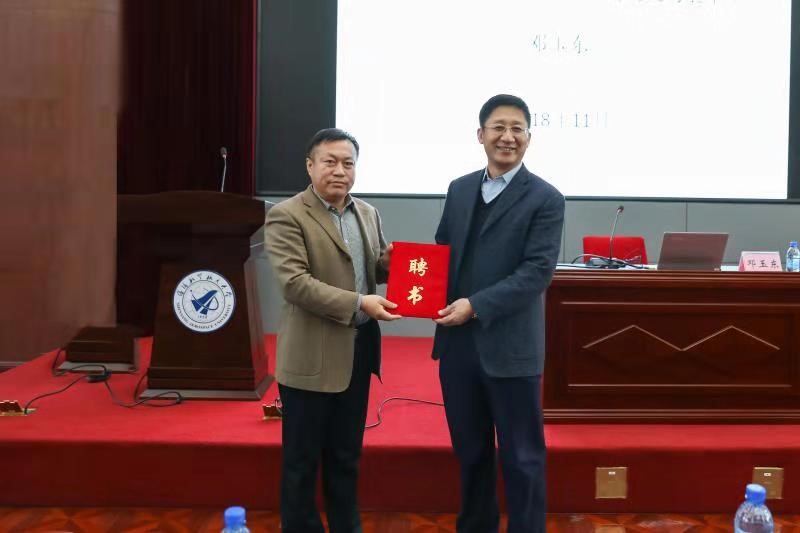 大会第一项经管学院书记吴景泰书记为中航沈飞民用飞机有限责任公司董事长邓玉东先生颁发了外聘专家证书。