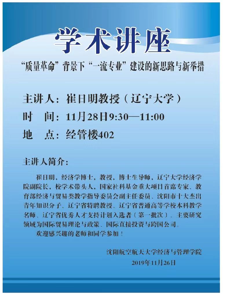 学术讲座(“质量革命”背景下“一流专业”建设的心思路与新举措)